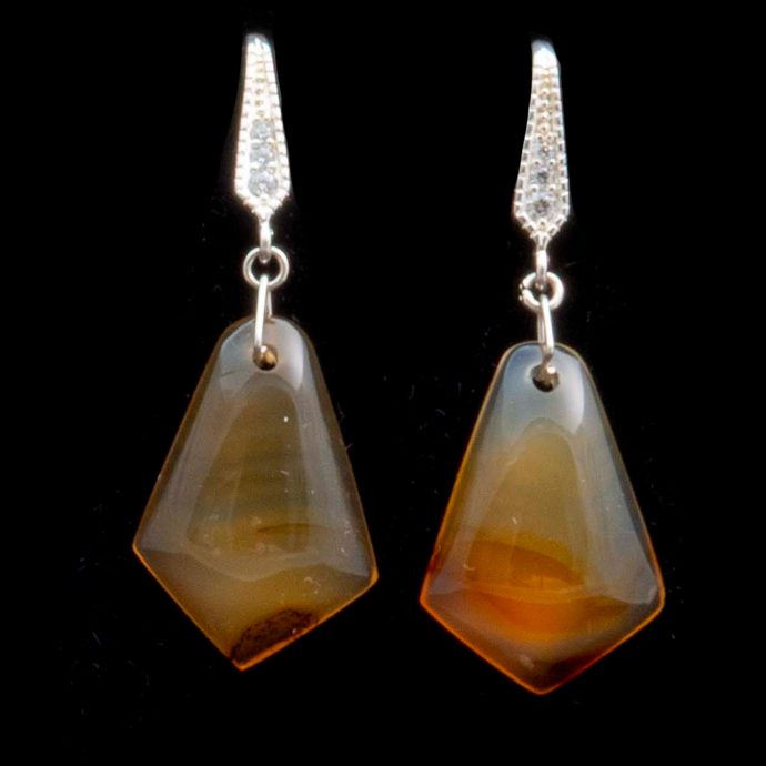Montana Moss Agate with delicate orange swirls festoon and earrings. All sterling silver.