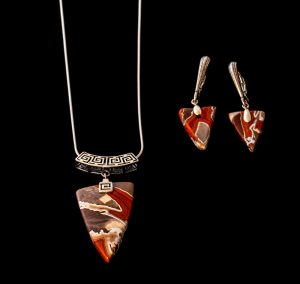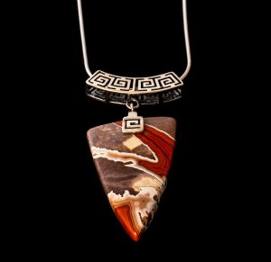Pryor Mountain Dry Head sterling silver festoon and matching earrings on sterling silver lever back earrings. Pendant measure approximately 1 1/2″ long and 1 1/14 wide at top. Shipped with 20-inch sterling silver chain unless another length is requested. Chains available in 16-inch to 36-inch lengths.